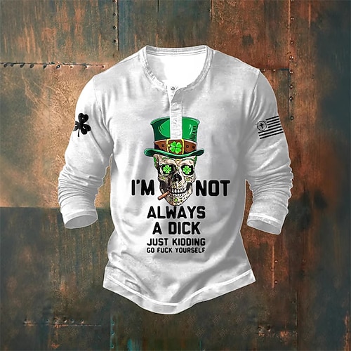 Giorno di San Patrizio San Patrizio Festa di San Patrizio Per uomo Bandiera Teschio Trifoglio Maglietta Maglia Henley Manica Lunga maglietta Stampa 3D Henley Camicia Sport Moda Designer Quotidiano