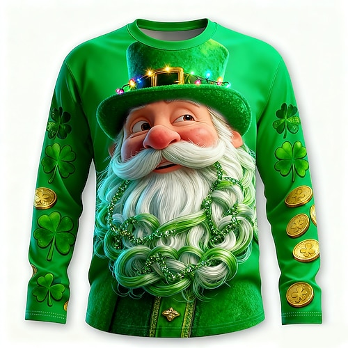 San Patrizio Per uomo Trifoglio Irlandese fortunato Maglietta Manica Lunga maglietta Stampa 3D Girocollo Camicia Esagerato Designer 3D Vacanza Feste Streetwear verde 1# Estate Primavera Autunno