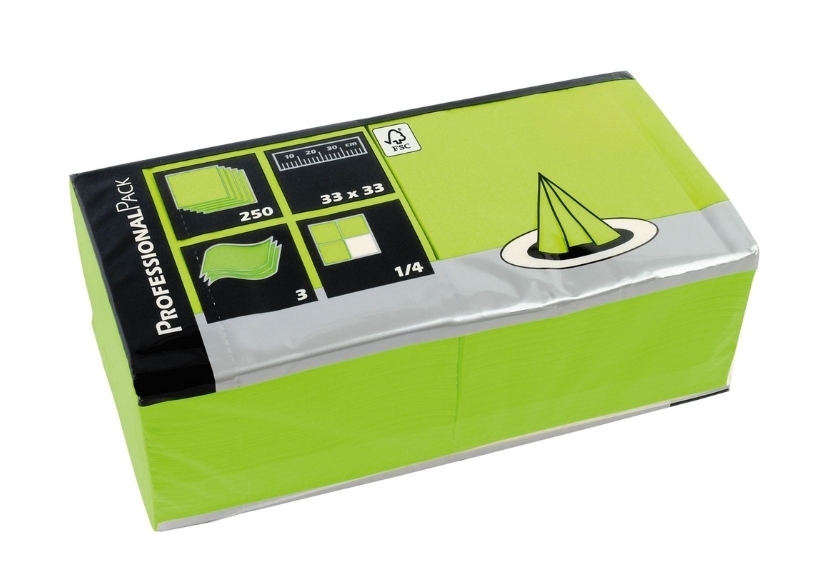 1600x Zelltuch-Servietten 33 x 33 cm 3-lagig 1/4 Falz lime green