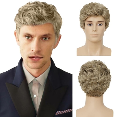 Kurze, blonde Lockenperücke für Männer aus natürlich voluminösem, hitzebeständigem Kunsthaar – ideal für den täglichen Gebrauch.