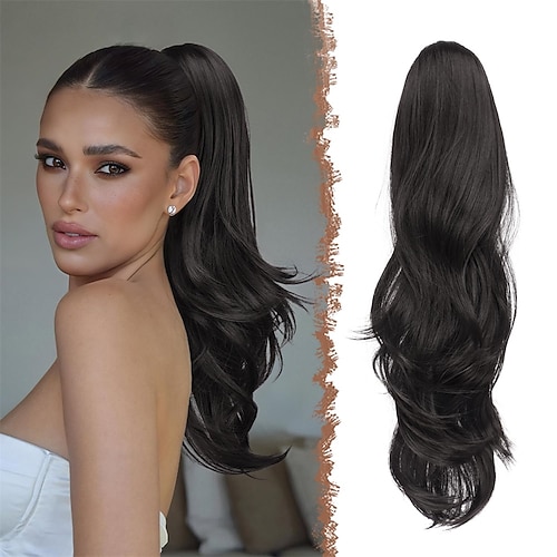 Pferdeschwanzverlängerung, 45 cm (18 Zoll), schwarzbraune Haarspangen für Damen, mehrlagig, flauschig, dick, gewellt, mit Clips zum Einstecken, weiches Kunsthaar, 45 cm (18 Zoll)