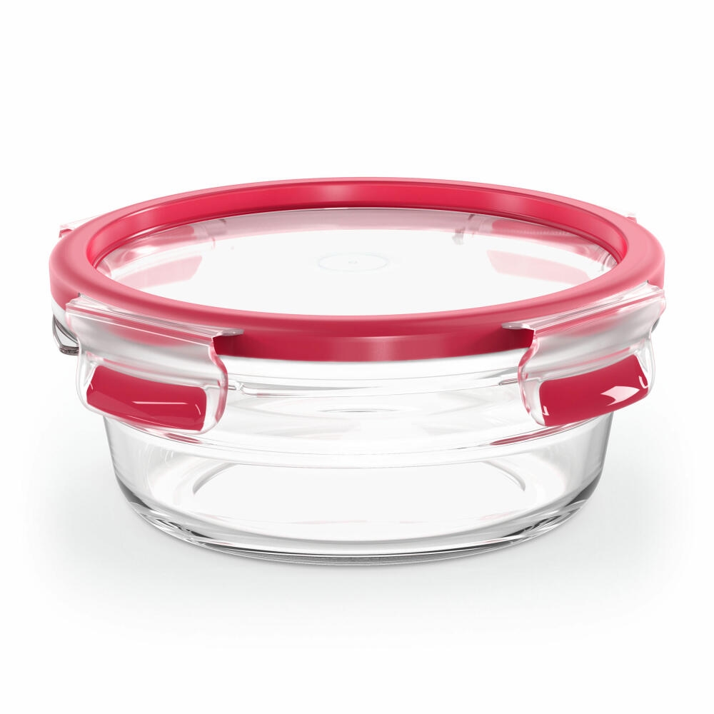 EMSA Clip & Close GLAS Frischhaltedose, Vorratsbehälter, Vorratsdose, Transparent / Rot, 0.6 L, N10403