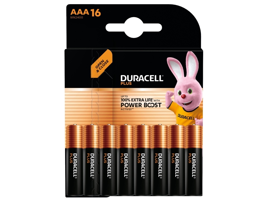 Duracell Plus, Kertakäyttöinen akku, AAA, Alkali, 1,5 V, 16 kpl, musta, Kulta