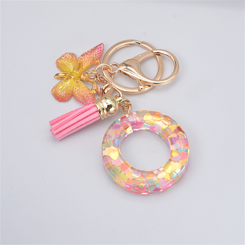 New Exquisite 26 Letter Resin Keychain with Pink Tassel Gradient Butterfly Pendant Key Ring Women Bag Ornaments Accessories Gift