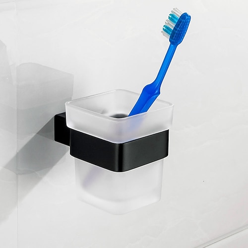accessorio da bagno multifunzione 1pc include portasciugamani/porta accappatoio/portasciugamani/portaspazzolino/portasapone e mensola da bagno in acciaio inox a parete nero opaco