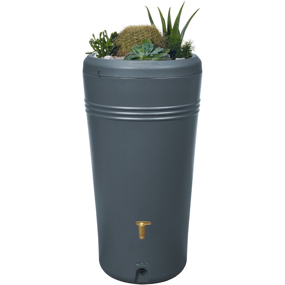 Deko-Regenspeicher Azura, aus Recyclingkunststoff in graphite grey, Inhalt 230 l, inkl. Pflanzschale
