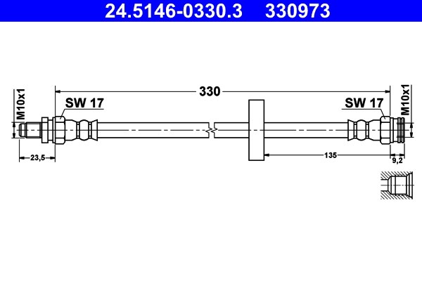 Jarruletku, Taka-akseli Ate 24.5146-0330.3 - smart cabrio, city-coupe, crossblade, fortwo cabrio, fortwo coupé - OE 000 4163 V001 000000