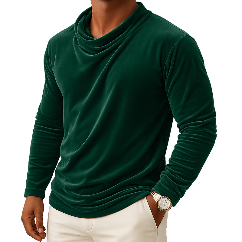Men's T Shirt Long Sleeve Crew Neck Fall Fall Winter All Seasons Solid Color Traditional / Vintage Casual Ruched Casual Home Outdoor Wine Black White Top Tee for Men