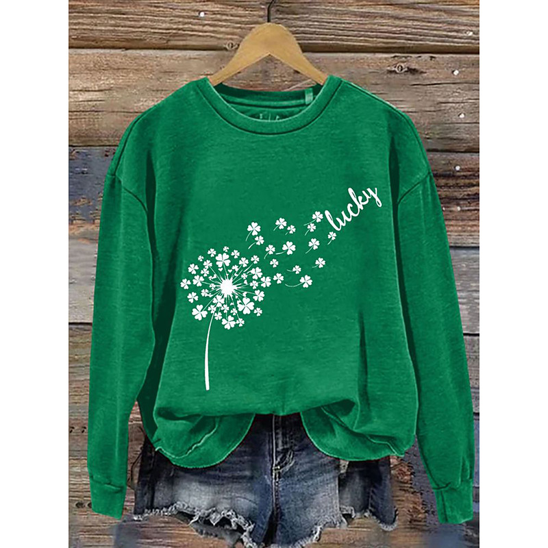 Women's Pullover Sweatshirt Graphic Shamrock Casual Long Sleeve Crew Neck Regular Tops Casual Street Dailywear Light Green Green Spring Fall Winter