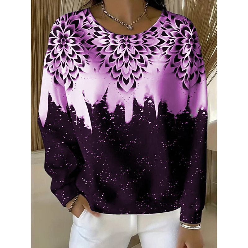 Women's T shirt Crew Neck Long Sleeve Tunic Casual Print Regular Tops Daily Pink Blue Purple Spring Fall