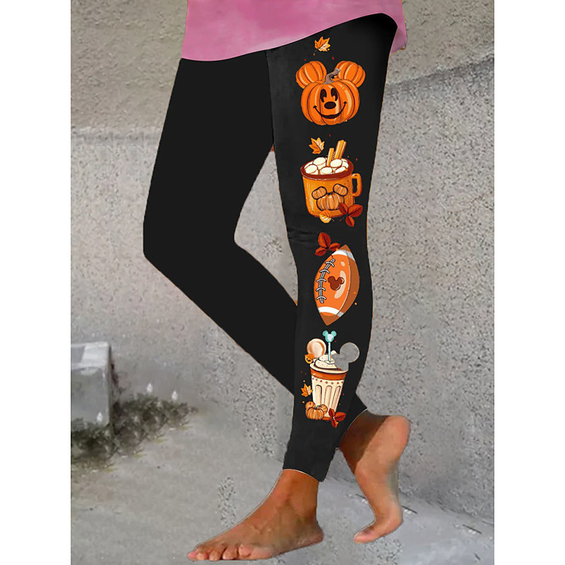 Women's Leggings Vacation Vintage Fashion Ankle-Length High Waist Graphic Pumpkin Printing Soft Breathable Stretchy Formal Outdoor Vacation rice white Orange Brown Spring Fall Winter Slim Fit