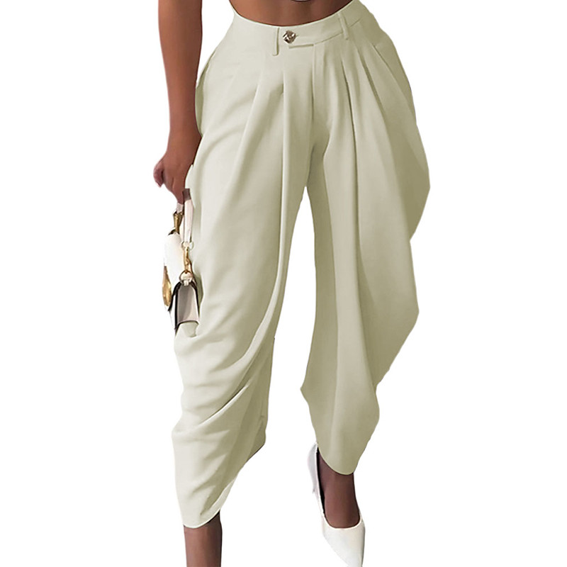 Women's Chinos Palazzo Pants Vacation Streetwear Casual Ankle-Length Medium Waist Plain Patchwork Comfortable Micro-elastic Daily Outdoor Vacation rice white Apricot Black White Summer Spring Fall