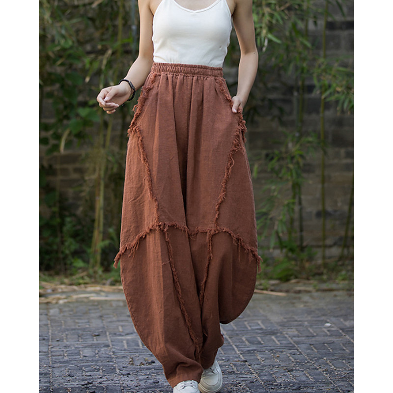 Women's Cotton Linen Pants Chinos Bloomers Vacation Streetwear Basic Full Length Medium Waist Plain Pocket Elastic Waistband Inelastic Daily Outdoor Street rice white Coffee Fall Winter Loose Fit