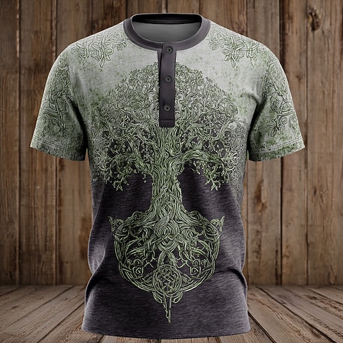 Herren Baum Wikinger Henley Hemd T-Shirt Langarm Vintage Mode Retro Lässig Ferien Ausgehen Herbst Frühling Herbst Blau Dunkelbraun Rot Purpur Grün Henley Henley T-Shirt