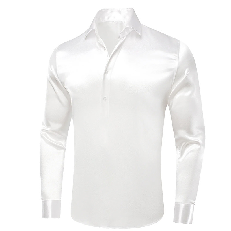 Men's Shirt Silk Like Satin Shirt Dress Shirt Casual Shirt Prom Shirt Plain Formal Wedding Black White Red Royal Blue Long Sleeve Lapel Spring Fall All Seasons Clothing Apparel Plain