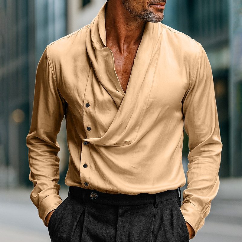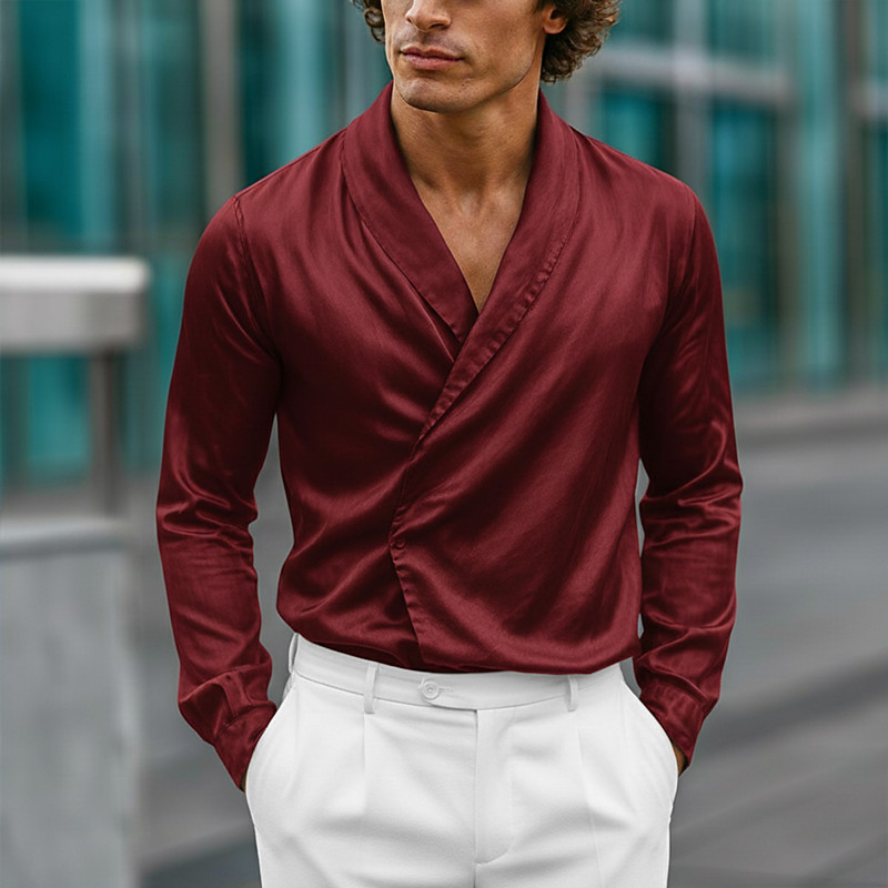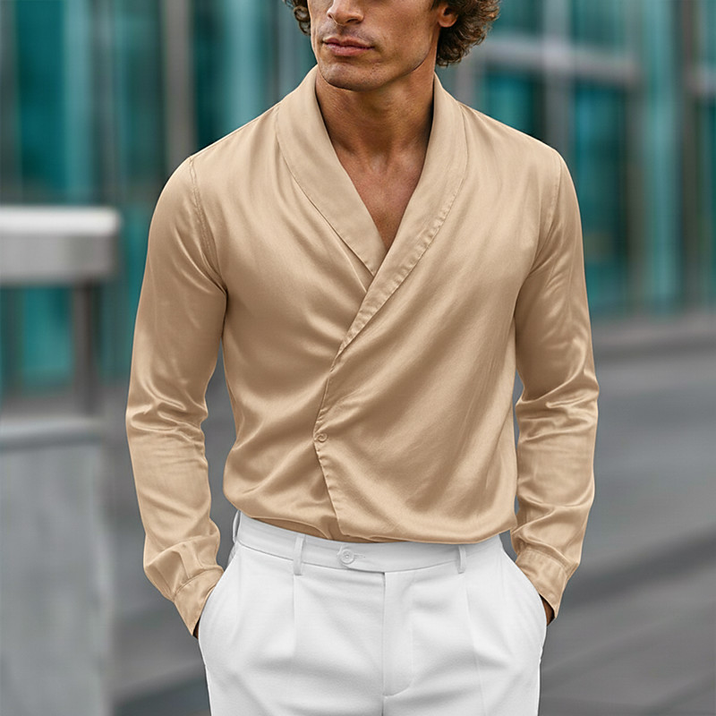 Men's Shirt Satin Shirt Dress Shirt Casual Shirt Button Up Shirt Prom Shirt Plain Formal Wedding Black Wine Royal Blue Gold Long Sleeve Shawl Collar All Seasons Clothing Apparel Wrap