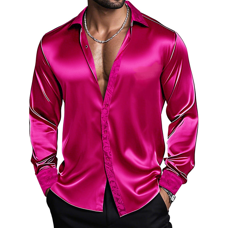 Men's Shirt Satin Shirt Dress Shirt Casual Shirt Button Up Shirt Prom Shirt Plain Wedding Party Silver Pink Red Blue Long Sleeve Lapel Spring All Seasons Clothing Apparel