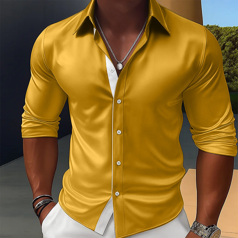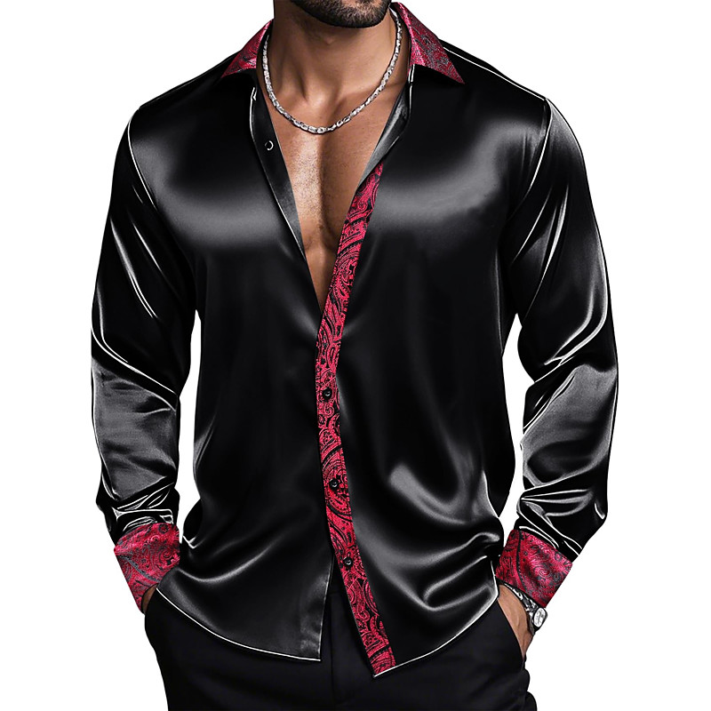 Men's Shirt Satin Shirt Dress Shirt Casual Shirt Button Up Shirt Prom Shirt Plain Formal Wedding Black Red Royal Blue Gold Long Sleeve Lapel All Seasons Clothing Apparel Color Block