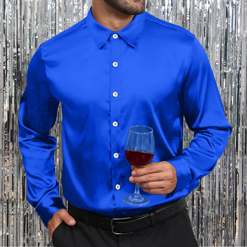 Men's Shirt Satin Shirt Dress Shirt Casual Shirt Button Up Shirt Prom Shirt Plain Formal Wedding Light Blue Royal Blue Gold Gray Long Sleeve Shawl All Seasons Clothing Apparel