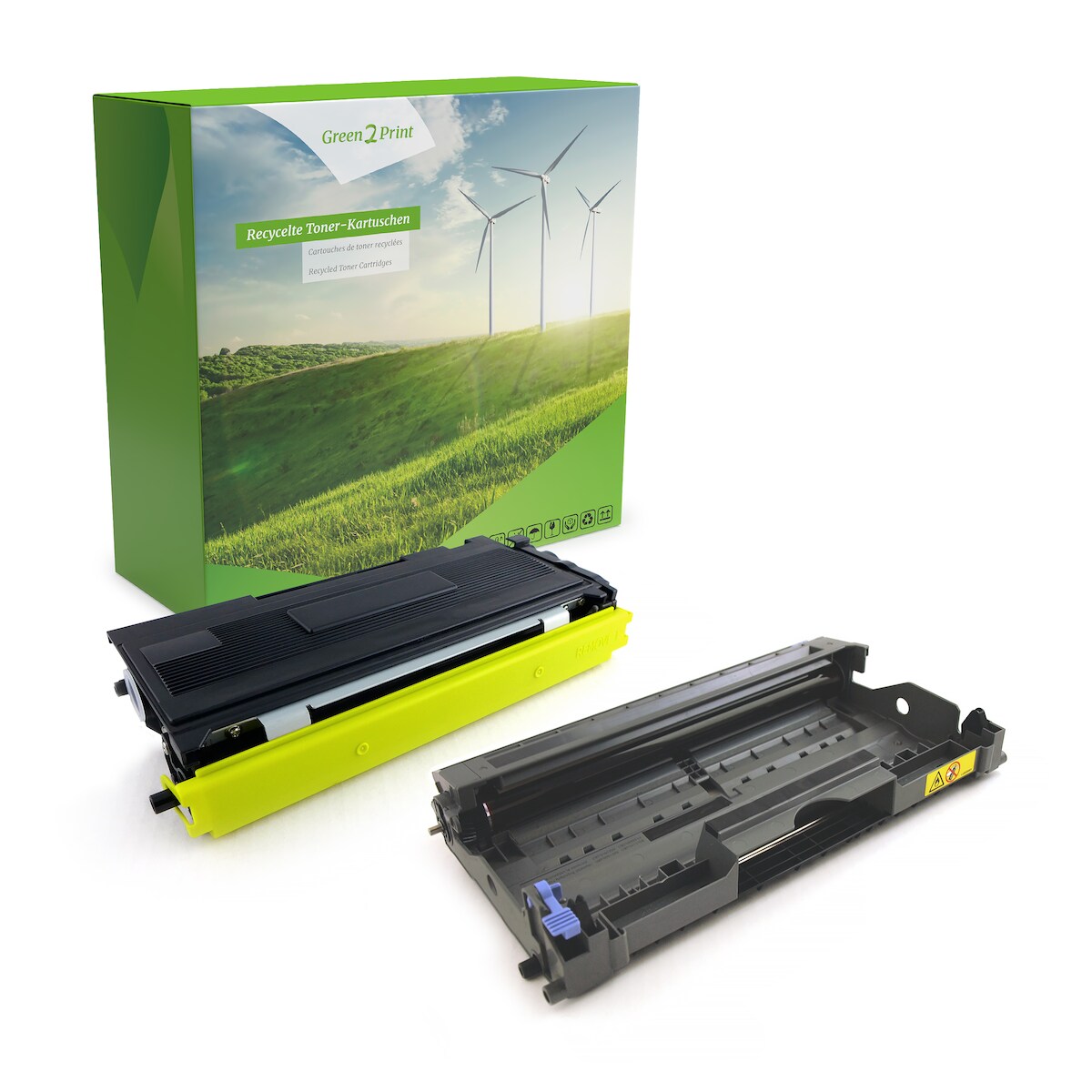 Green2Print 1x Toner, 1x Trommel Toner-Trommel-Set ersetzt Brother DR-2000, TN-2000 passend für Brother DCP7010L, DCP7010, DCP7025, FAX2820, FAX2920,