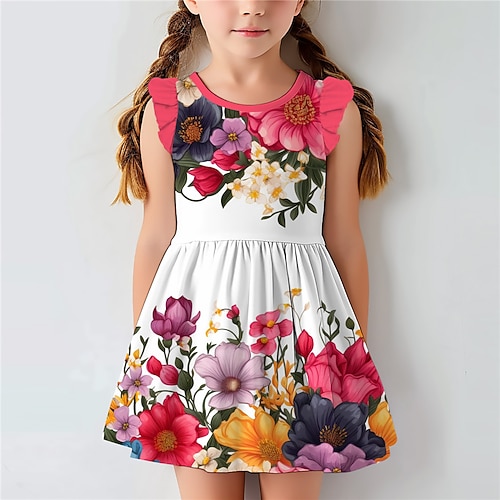 Pasqua ragazze' 3D Floreale Abito con balze Rosa Senza maniche Stampa 3D Estate Giornaliero Per eventi Informale Bellissimo Bambino 3-12 anni Abito casual Abito senza maniche Sopra il ginocchio