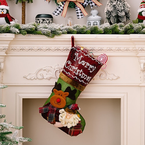Calza di Natale con Babbo Natale in cartone animato 3D, grande borsa regalo di Natale per bambini, decorazione festiva per le vacanze, perfetto ornamento stagionale per la casa e accessorio per le