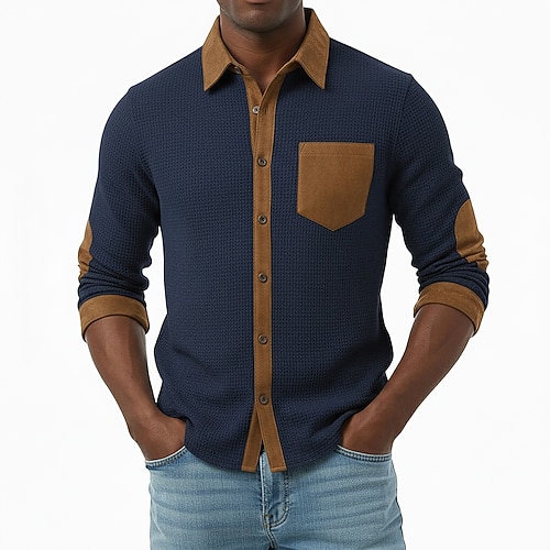 Per uomo Camicia Camicia a nido d'ape Camicia casual Camicia vintage Camicia con Bottoni Nero Blu marino Verde militare Grigio Manica Lunga Testurizzato Bavero Casuale Quotidiano Blocco di colore