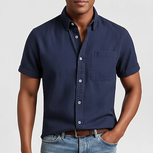 Per uomo Camicia Camicia casual Camicia con Bottoni Camicia lavata con acido Nero Bianco Blu marino Kaki Verde militare Manica Corta Semplice Colletto a Camicia Casuale Quotidiano Tasca Frontale