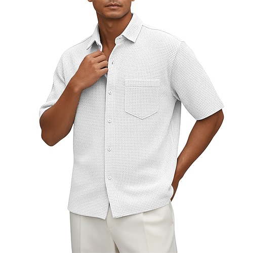 Per uomo Camicia Camicia a nido d'ape Tessuto Camicia casual Camicia con Bottoni Nero Bianco Borgogna Blu marino Verde militare Manica Corta Semplice Colletto a Camicia Casuale Quotidiano Tasca