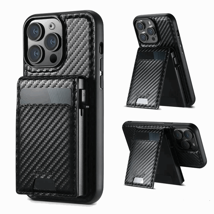 SUTENI Mobilskal till iPhone 15 Pro Magsafe Korthållare Carbon Fiber