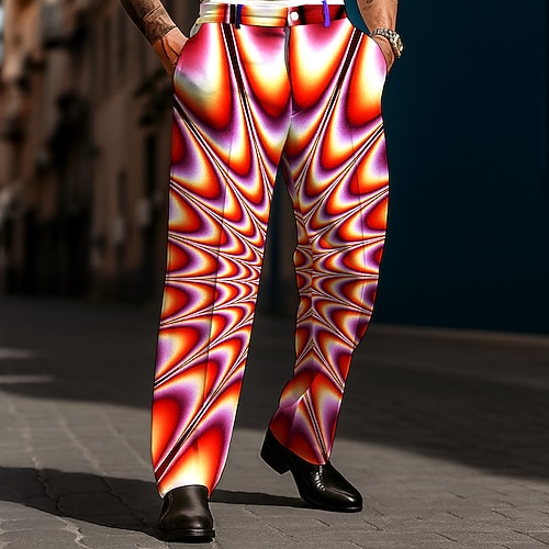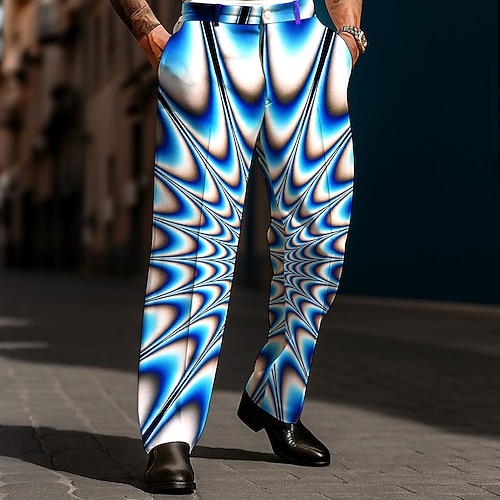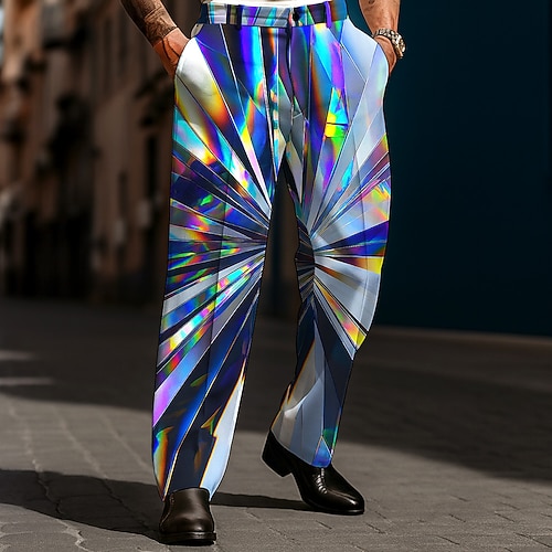 Per uomo Geometrico Illusione ottica Laser Pantaloni Eleganti Pantaloni Pantaloni da Abito Misura del girovita medio Casual Ferie Abbigliamento casual alla moda Pantaloni eleganti con vestibilit