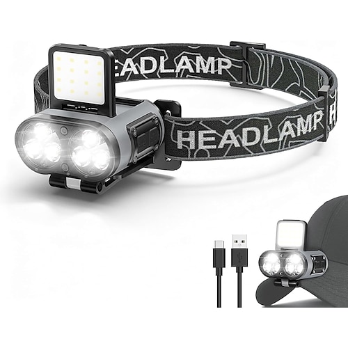 faro girevole versatile con spia rossa di avvertimento stoppino laser bianco, raggio regolabile a 90°, ricarica USB-C, clip per cappello a mani libere per lavori all'aperto, escursionismo ed