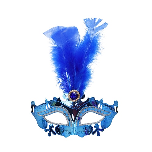 Maschera veneziana da donna con piume - accessorio colorato in stile martedì grasso tagliato al laser per feste di carnevale, cosplay eventi festivi