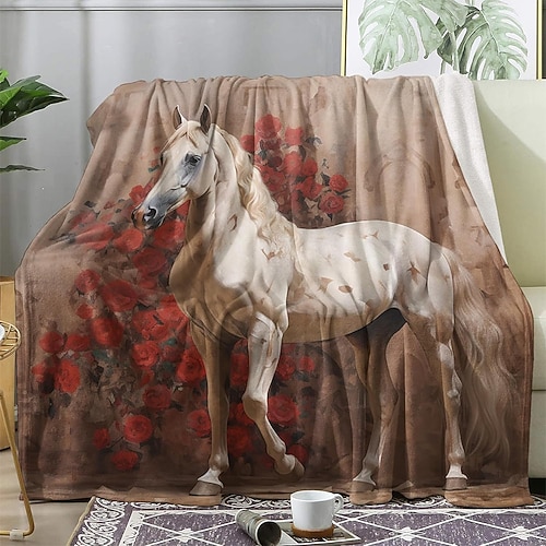 arazzo coperte in pile Coperta per divano Cavallo 3D Fantasia Camera da letto Divano Da letto Coperta decorativa Coperta calda Arredamento per la casa