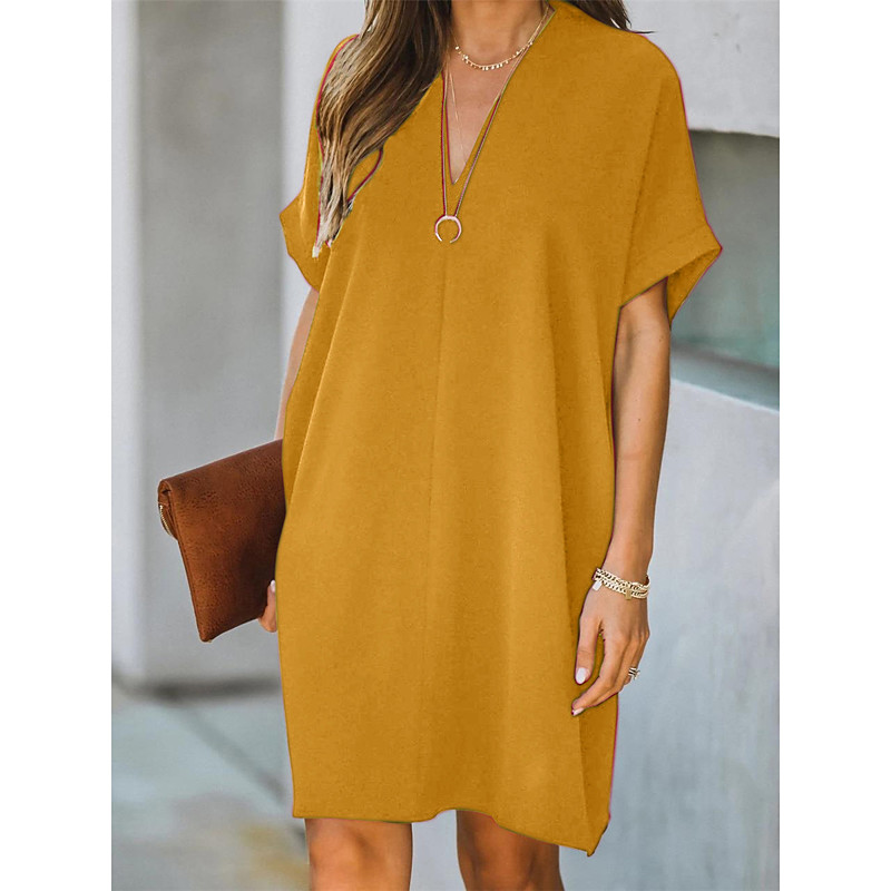 Women's Casual Dress Mini Dress Ruched Work Date Streetwear V Neck Short Sleeve Black White Yellow Color