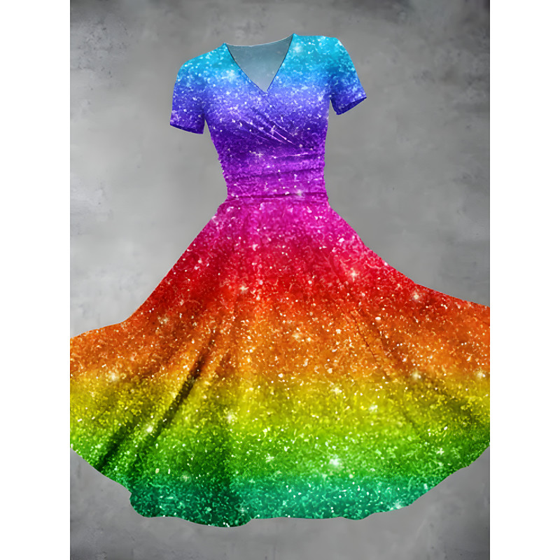 Women's Graphic Print V Neck Midi Dress Elegant Tropical Home Date Short Sleeve Summer