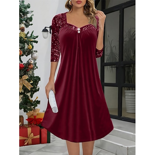 Damen Midi-Kleid A-Linie Kleid Lässig Täglich Urlaub Date Reguläre Passform Uni Lange Ärmel Notched Neck Wein Herbst Winter