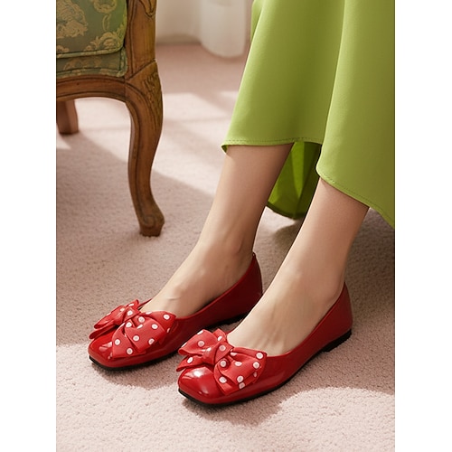 ballerine con fiocco a pois da donna – ballerine in vernice in stile retrò per l'uso quotidiano, calzature ispirate al vintage anni '50 per la primavera e l'estate