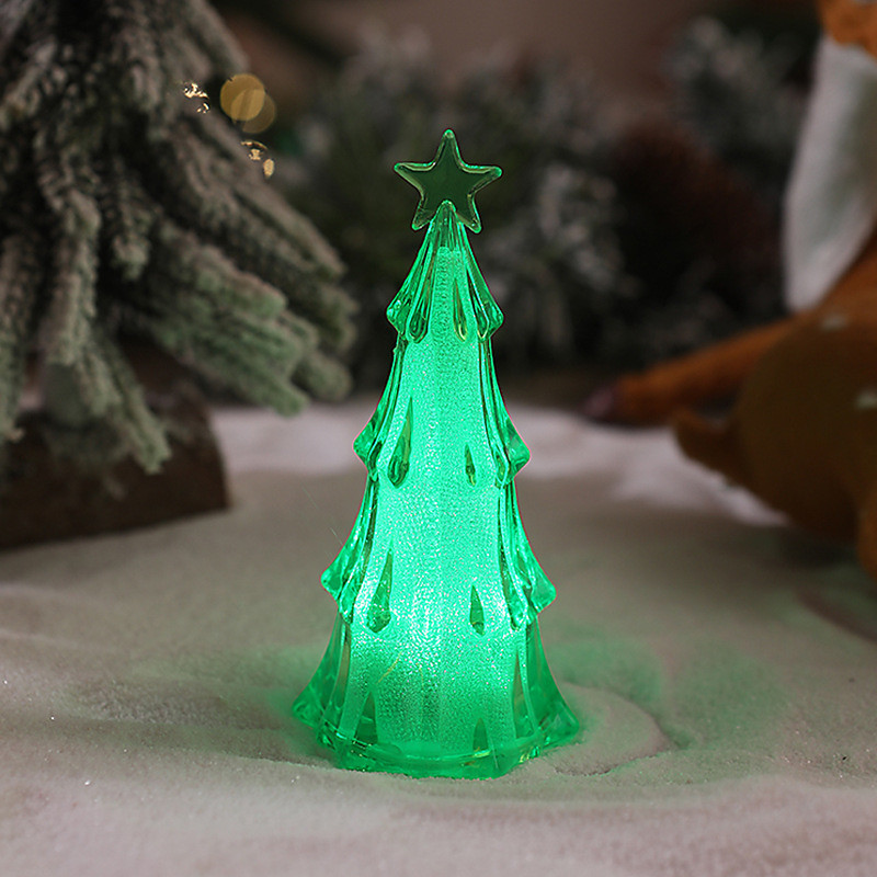 1 Pc 12.5 6CM Christmas Acrylic LED with Light Christmas Tree Night Light Indoor and Outdoor Party Desktop Decoration Ornament Light Colorful Warm Light AG10 3 Batteries