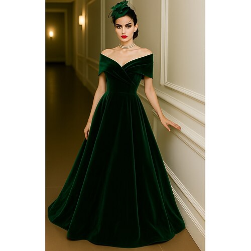 Abito da sera A-Line rosso e nero elegante abito formale da matrimonio lunghezza fino al pavimento manica corta spalle scoperte tasca in velluto con pieghe