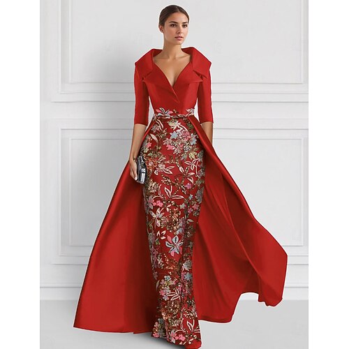 Abito da sera A-Line con perline e ricami Abito da madre della sposa Abito formale Elegante abito da matrimonio lungo fino al pavimento con maniche a metà colletto a camicia in satin con spacco