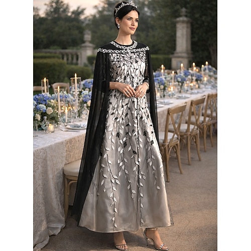 Abito a-line lungo fino al pavimento abito da festa abito da cocktail abito da sposa abito madre della sposa maniche lunghe scollo tondo elegante formale abito da matrimonio con ricami
