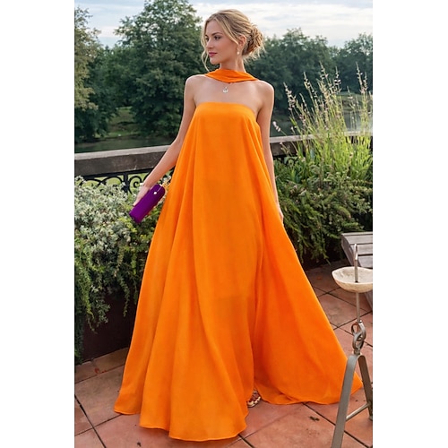 Abito da spiaggia A-Line Abito da sera Elegante Ospite di matrimonio Lunghezza fino al pavimento Senza maniche Senza spalline Mantelle Chiffon con arricciature