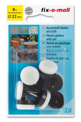 Kunststoffgleiter mit Stift rund 22mm weiß fix-o-moll