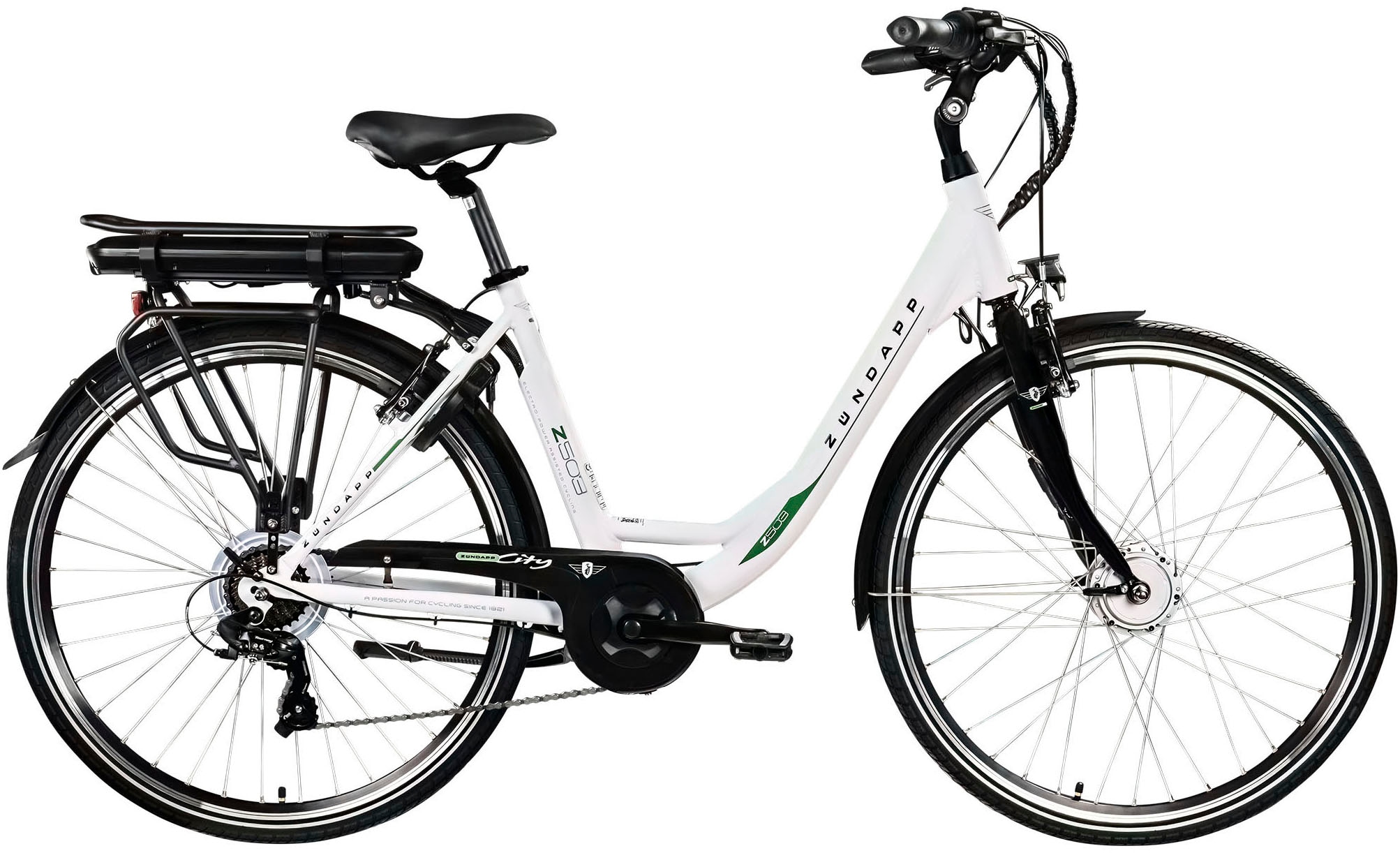 E-Bike ZÜNDAPP "Z503" Gr. 49, weiß (grün, weiß), Elektrofahrräder, 49cm, 28 Zoll (71,12cm), Pedelec, Elektrofahrrad für Damen u. Herren