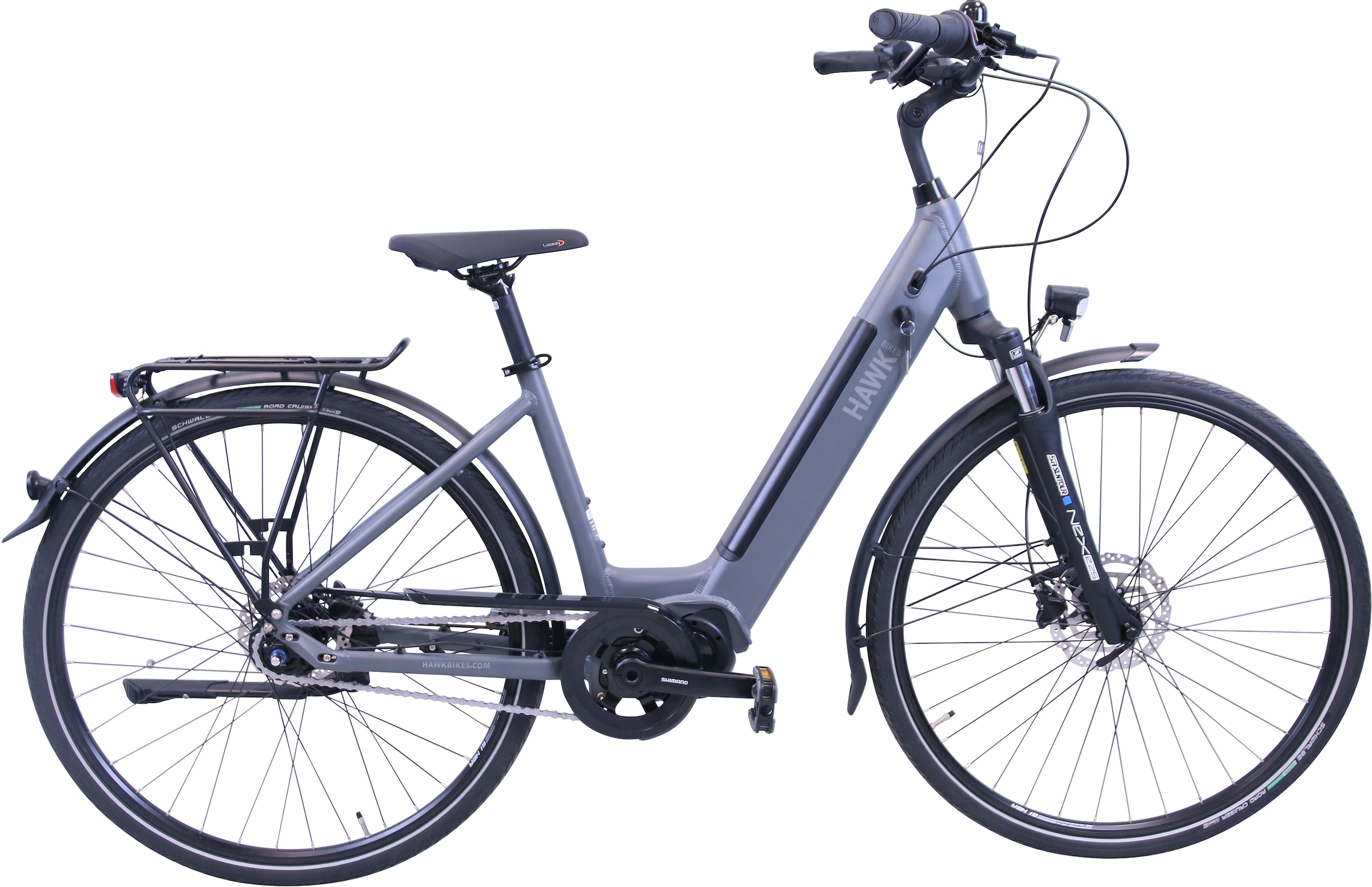 E-Bike HAWK BIKES "eCity Wave Integrated Lady STEPS" Gr. 44, grau, Elektrofahrräder, 44cm, 28 Zoll (71,12cm), Pedelec, Elektrofahrrad für Damen u. Herren
