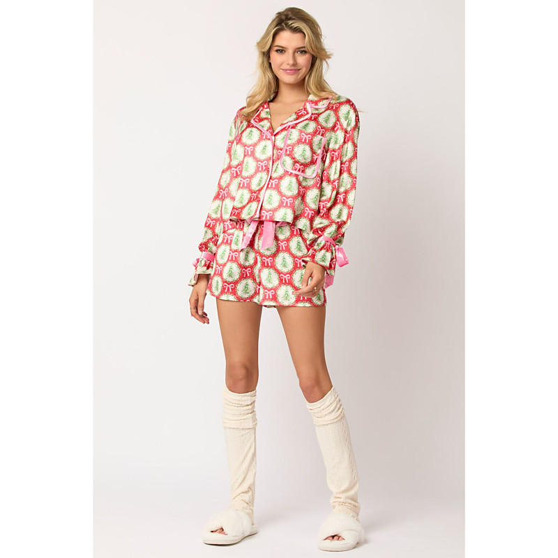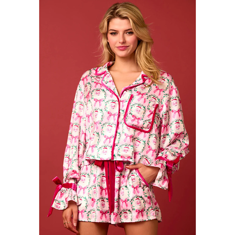 Santa Claus Sleepwear Pajamas Satin Pajama Cosplay Costume Adults New Year Eve Party Top Pants Valentine's Day Gift for Her