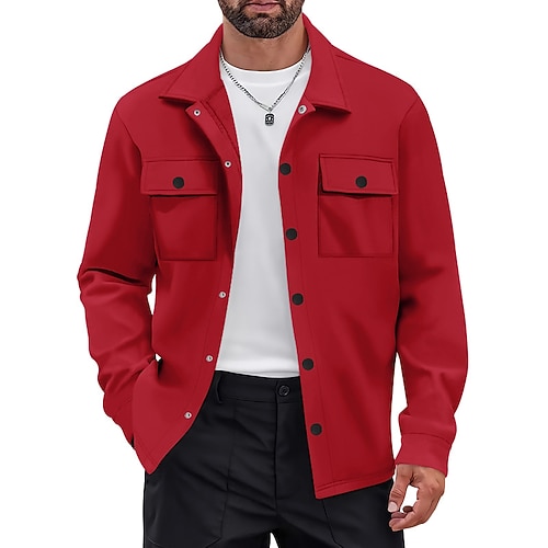 Herren Leichte Jacke Cargo-Jacke Freizeitjacke Urlaub Täglich Warm Tasche Frühling Herbst Einfach Mode Klassisch Revers Regulär Schwarz Rote Khaki Hellgrau Dunkelgray Jacken