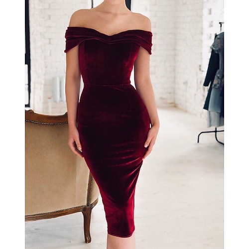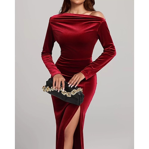 Per donna Abito Midi Abito in Velluto Abito da Cocktail Elegante Moda Moderno Quotidiano All'aperto Festa serale Vestibilità regolare Semplice Manica Lunga Senza Spalle Rosso Primavera Autunno
