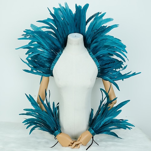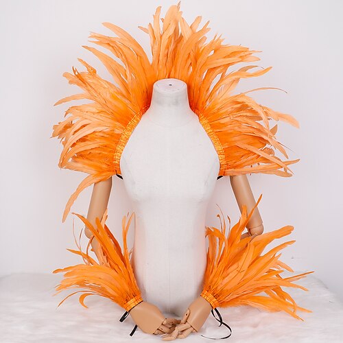 Accessori Samba per il Carnevale di Rio - Set costumi di piume rosse e gialle per Carnevale - Mantello sulle spalle e polsi per festa di Mardi Gras danza - Costume per performance al festival del